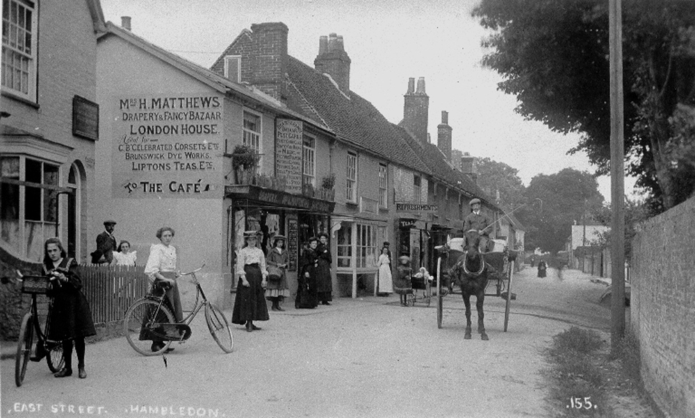 East Street, ‘a long straggling road’ in the words of Dora Goldsmith in 1908, runs from High Street as far as Park House and onwards to The Bat & Ball Public House which sits adjacent to Broadhalfpenny Down at the Parish Boundary with Clanfield. Although it is now now residential within the village boundary, East St has, in the past, encompassed every sort of house, business, profession and trade.