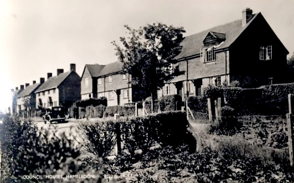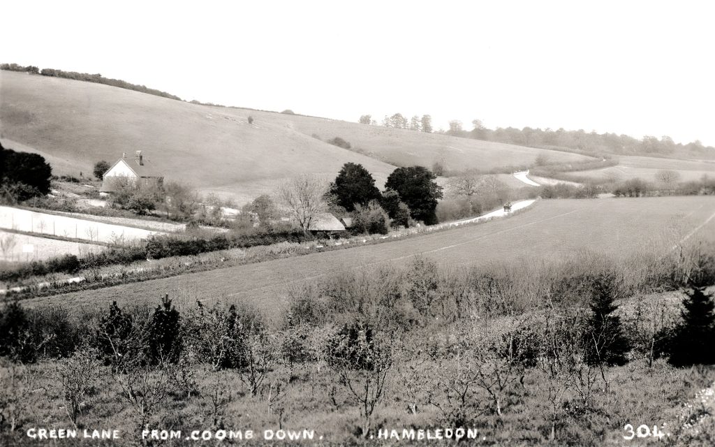 Green Lane, classified B2150, heads north northwest from its junction with West Street. The junction seems to have its own strategic or arterial importance with the siting of The Green Man public house (now a private residence) on the west side and next to it (actually on West St) The Cross Tree, once two attached cottages and now a single residence. Between these adjacent buildings a well-used footpath runs due west up to Boarhuts Copse. On the east side of the junction is a short lane, Crossways – location of two cottages. B2150 is the relatively busy connection with routes to Winchester and Alton. At Three Corners, Green Lane forks right from the main road in the direction of Chidden while the B2150 winds, with spectacular views over downland, past the site of the former Hambledon Race Course, ultimately to intersect with the A32 at Brockbridge.